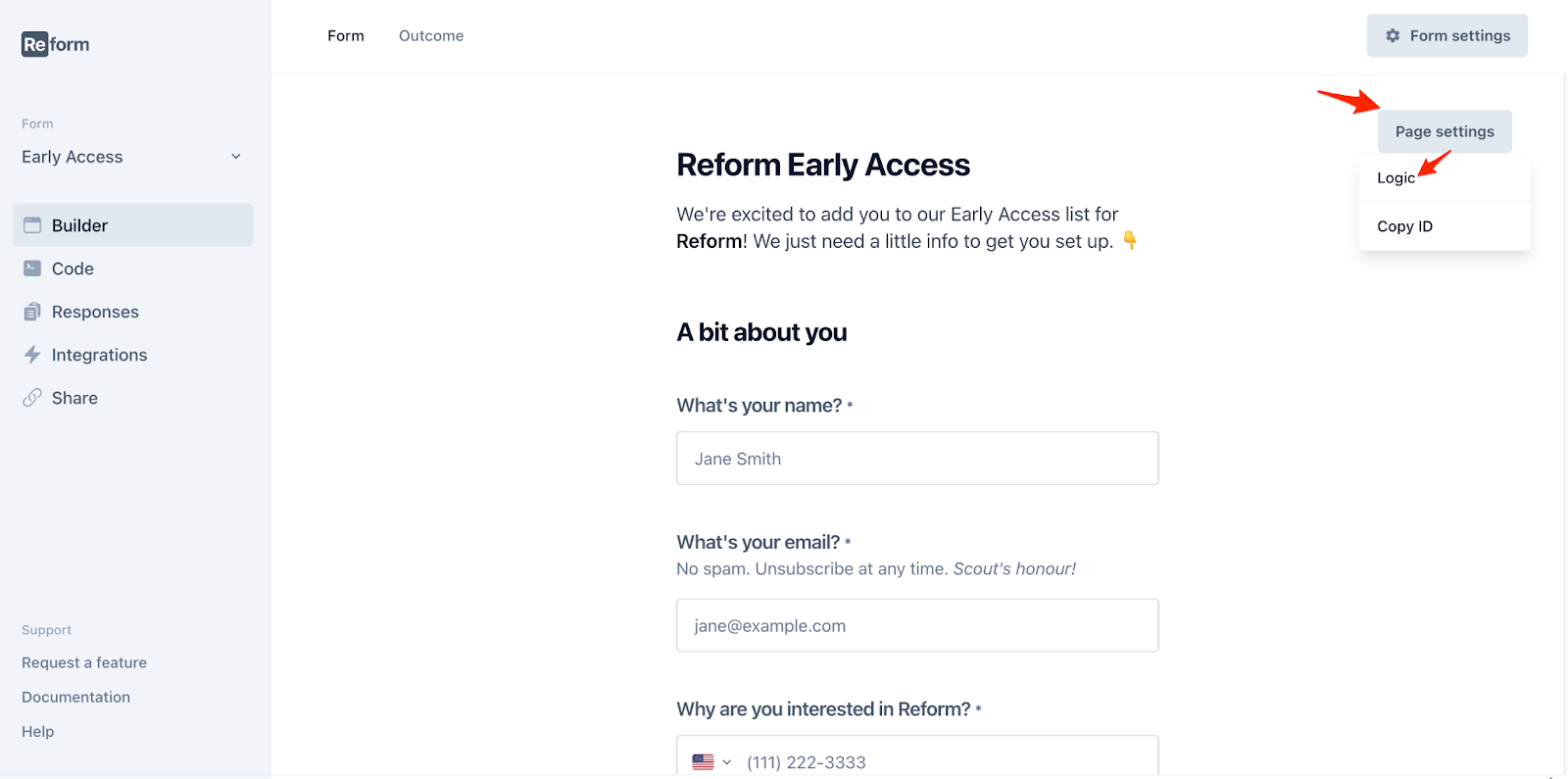 Our advanced logic features let you create dynamic forms that change based on respondents' answers. This guide will help you understand and use these features to make your form more dynamic and user-friendly.