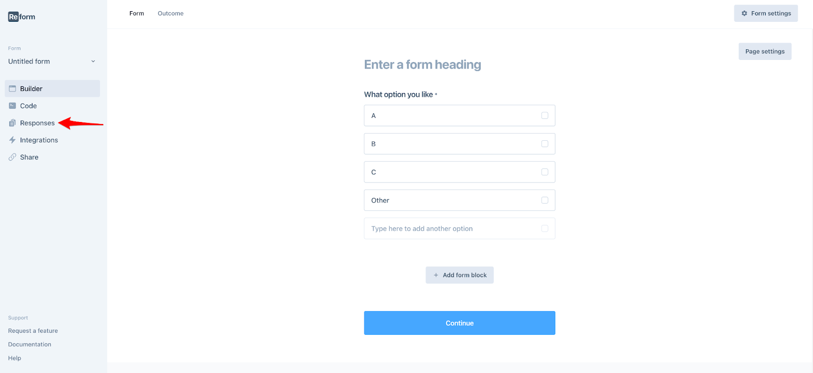 Click on “Responses” in the menu on the left side of the form builder screen. This will take you to the page where all submitted responses are displayed.