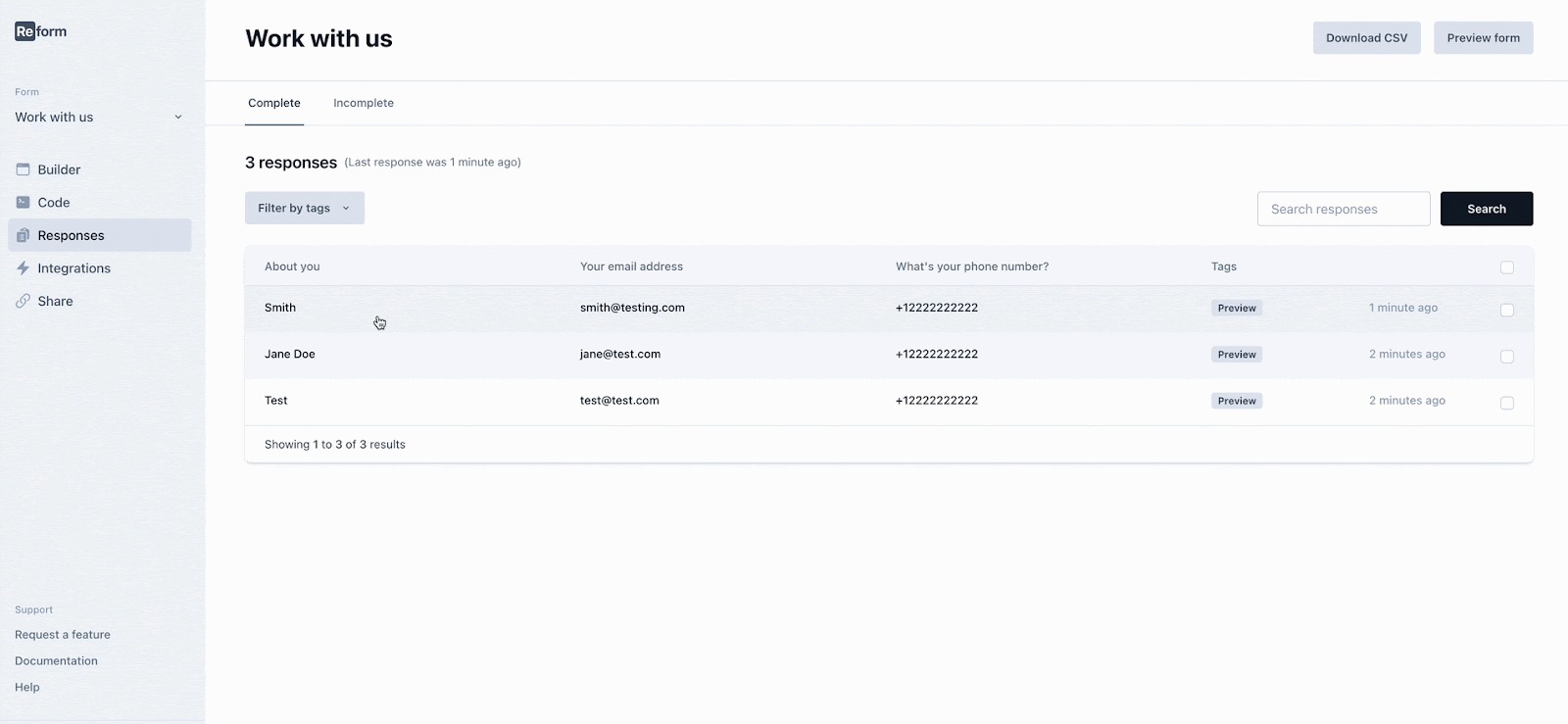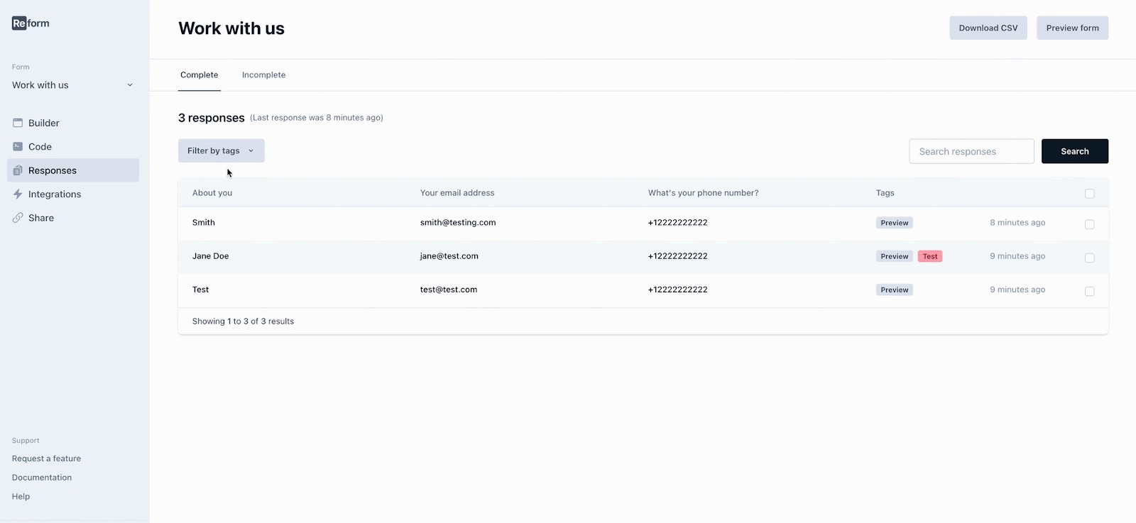 - Some tags, like “Preview”, are automatically assigned to responses. The “Preview” tag helps identify responses made during form previews, allowing you to exclude these from your primary analysis.