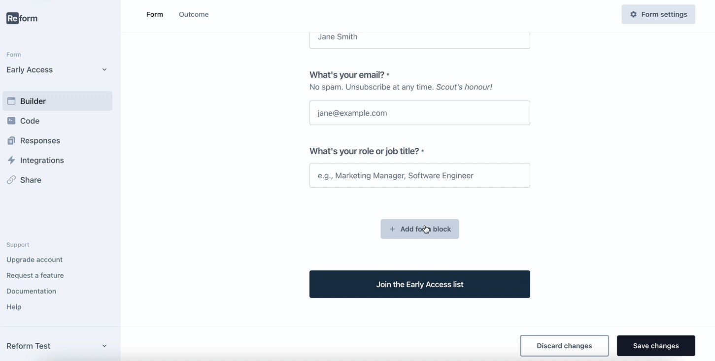 - Go Back to Reform and Embed the Hubspot Calendar: Paste the Hubspot calendar URL into the block field and click the "Embed" button. The calendar will appear on the page where the block is located.