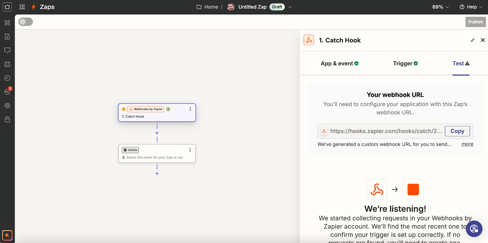 - Get the Webhook URL: Zapier will now generate a unique webhook URL for you. Copy this URL to your clipboard.