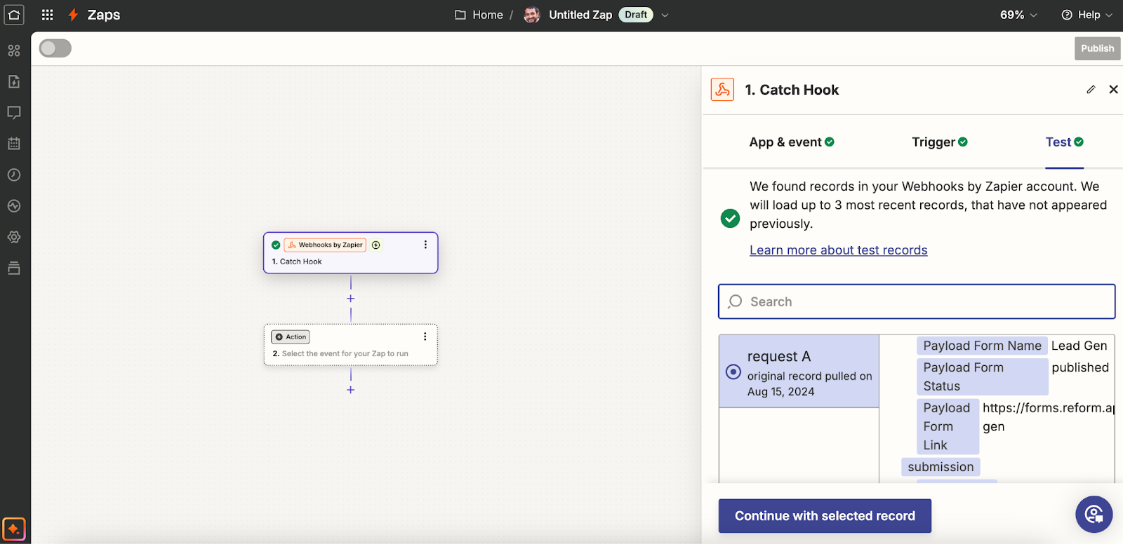 You’ve successfully connected your Reform to Zapier using Webhooks. This is just one example of the many ways you can automate tasks with Zapier. Feel free to explore other integrations and customize them to fit your needs.